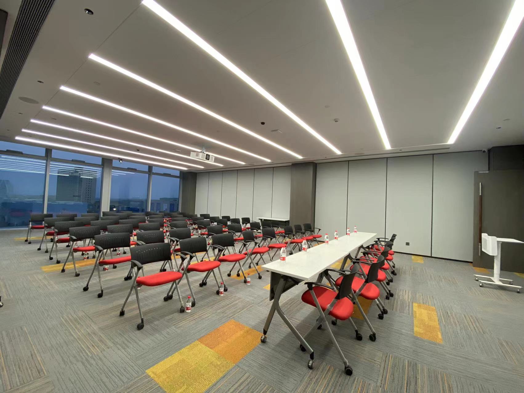 會議室采用DS無線數(shù)字會議系統(tǒng):系統(tǒng)采用無線方式連接,便攜安裝,而且無需布線,不影響整體的裝修布局??蛇B接會場音響擴聲及錄音設(shè)備,可與DS中控系統(tǒng)結(jié)合,締造完美的會議系統(tǒng)方案。