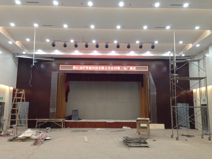 浙能臺(tái)州第二電廠多功能廳主要作為會(huì)議、報(bào)告和講座使用,兼?zhèn)鋳蕵坊顒?dòng)的開展。包括數(shù)字顯示系統(tǒng)、集中控制系統(tǒng)、矩陣切換系統(tǒng)、專業(yè)擴(kuò)聲系統(tǒng)、舞臺(tái)燈光系統(tǒng)和舞臺(tái)機(jī)械系統(tǒng)。滿足大屏顯示、LED會(huì)標(biāo)顯示、多種類和多數(shù)量音視頻信號(hào)切換、會(huì)議發(fā)言、舞臺(tái)燈光效果和舞臺(tái)機(jī)械等功能。