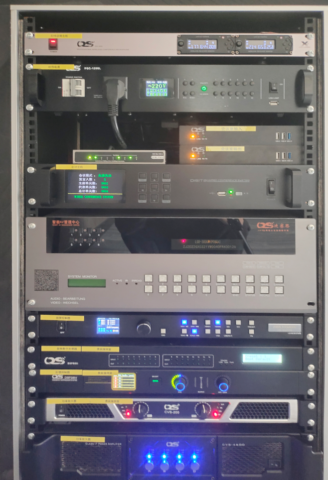 會(huì)議室采用DS無(wú)線數(shù)字會(huì)議系統(tǒng):系統(tǒng)采用無(wú)線方式連接,便攜安裝,而且無(wú)需布線,不影響整體的裝修布局??蛇B接會(huì)場(chǎng)音響擴(kuò)聲及錄音設(shè)備,可與DS中控系統(tǒng)結(jié)合,締造完美的會(huì)議系統(tǒng)方案。