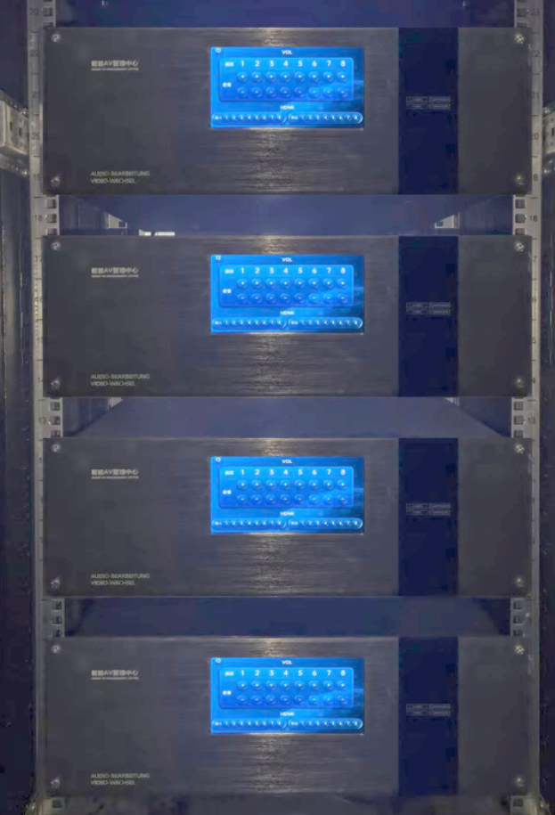 中控系統(tǒng):滿足對(duì)會(huì)議室音視頻進(jìn)行實(shí)時(shí)切換調(diào)度,中控系統(tǒng)采用無(wú)線觸摸屏進(jìn)行操作,中控主機(jī)和無(wú)線觸屏根據(jù)會(huì)議室時(shí)間使用情況,編輯運(yùn)行控制程序,下載到中控主機(jī)和無(wú)線觸摸屏進(jìn)行控制運(yùn)行,在無(wú)線觸摸屏的控制線,達(dá)到音視頻切換實(shí)時(shí)操控,解決繁瑣操作,輕松控制會(huì)議室室內(nèi)各種系統(tǒng)受控設(shè)備操作。