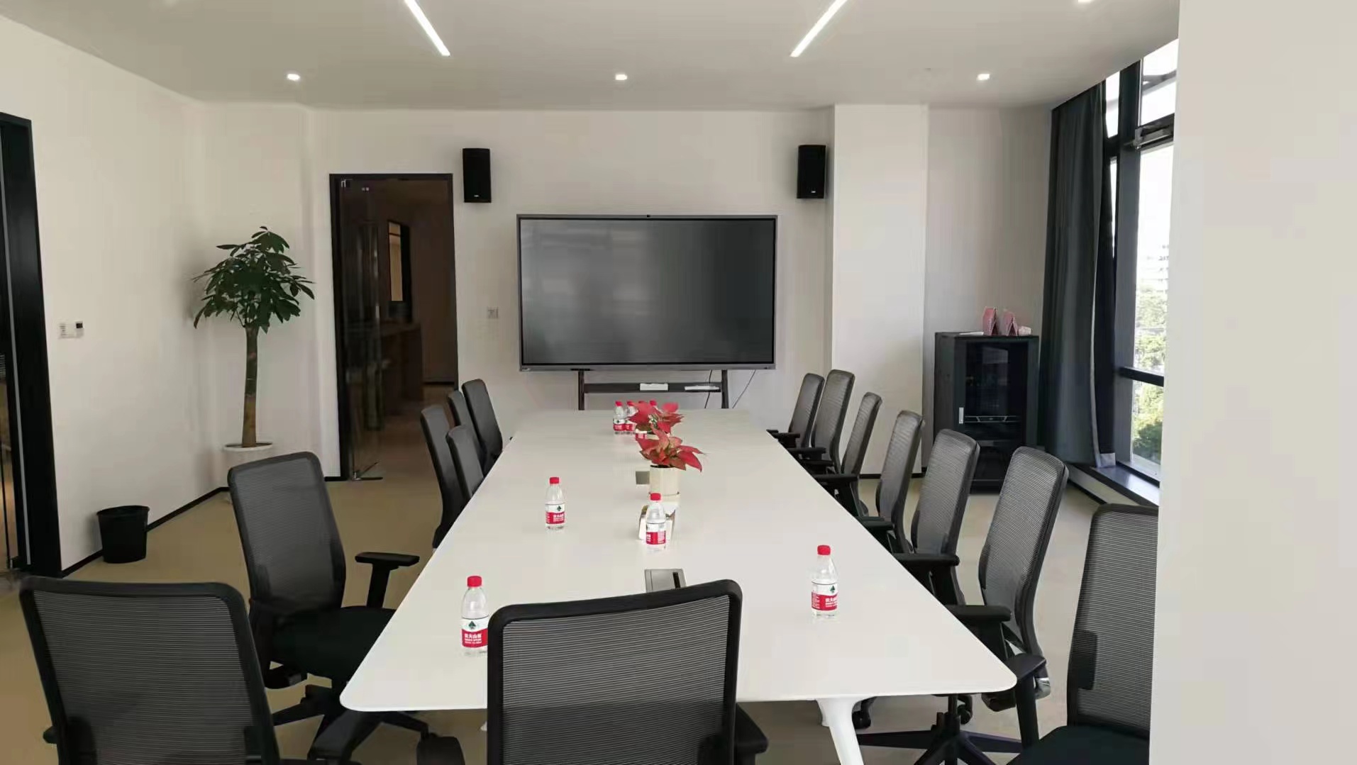 會議室采用DS無線數(shù)字會議系統(tǒng):系統(tǒng)采用無線方式連接,便攜安裝,而且無需布線,不影響整體的裝修布局??蛇B接會場音響擴聲及錄音設(shè)備,可與DS中控系統(tǒng)結(jié)合,締造完美的會議系統(tǒng)方案。