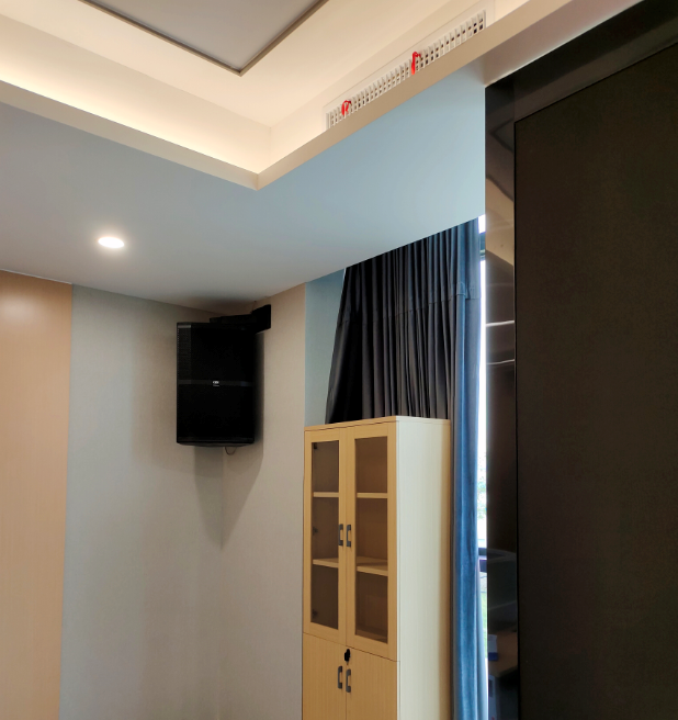 經(jīng)過現(xiàn)場(chǎng)測(cè)量,現(xiàn)場(chǎng)工程師對(duì)補(bǔ)聲揚(yáng)聲器做了合理的延時(shí)處理,做到聲音從一致方向傳來,極大地降低了相位失真。讓該音頻系統(tǒng)動(dòng)力穩(wěn)定充沛,擴(kuò)聲純凈無干擾,無論會(huì)議還是影視觀賞及活動(dòng)演出,都能得到音質(zhì)清晰自然,音頻飽滿的擴(kuò)聲。