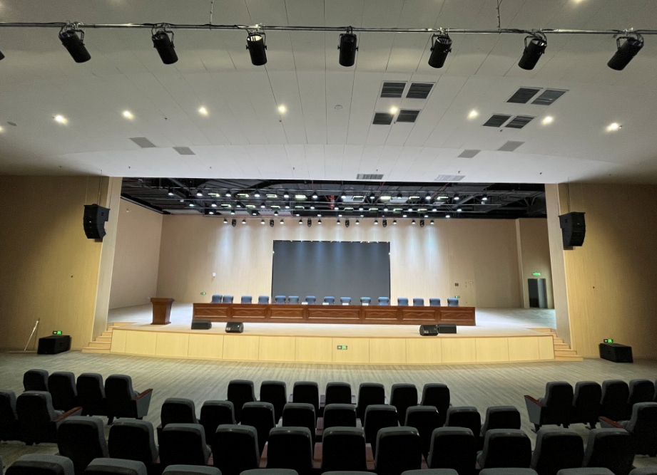 富春灣第三中學(xué)(靈橋中學(xué))大報(bào)告廳可容納全校師生一起會(huì)議及演出,建聲要求及舞美效果十分嚴(yán)格,我司完成其要求內(nèi)容對(duì)其進(jìn)行設(shè)計(jì)。搖頭燈、聚光燈、染色燈、三基色等搭配控臺(tái),使其操作簡(jiǎn)便又具舞臺(tái)效果;雙八寸的線陣搭配低音及輔助、臺(tái)唇音箱,讓大報(bào)告廳的每個(gè)角落都被聲場(chǎng)完美覆蓋。設(shè)備的選型和安裝結(jié)合現(xiàn)場(chǎng)裝修效果,提前預(yù)埋、提前敷設(shè),讓大報(bào)告廳整體美觀大氣。