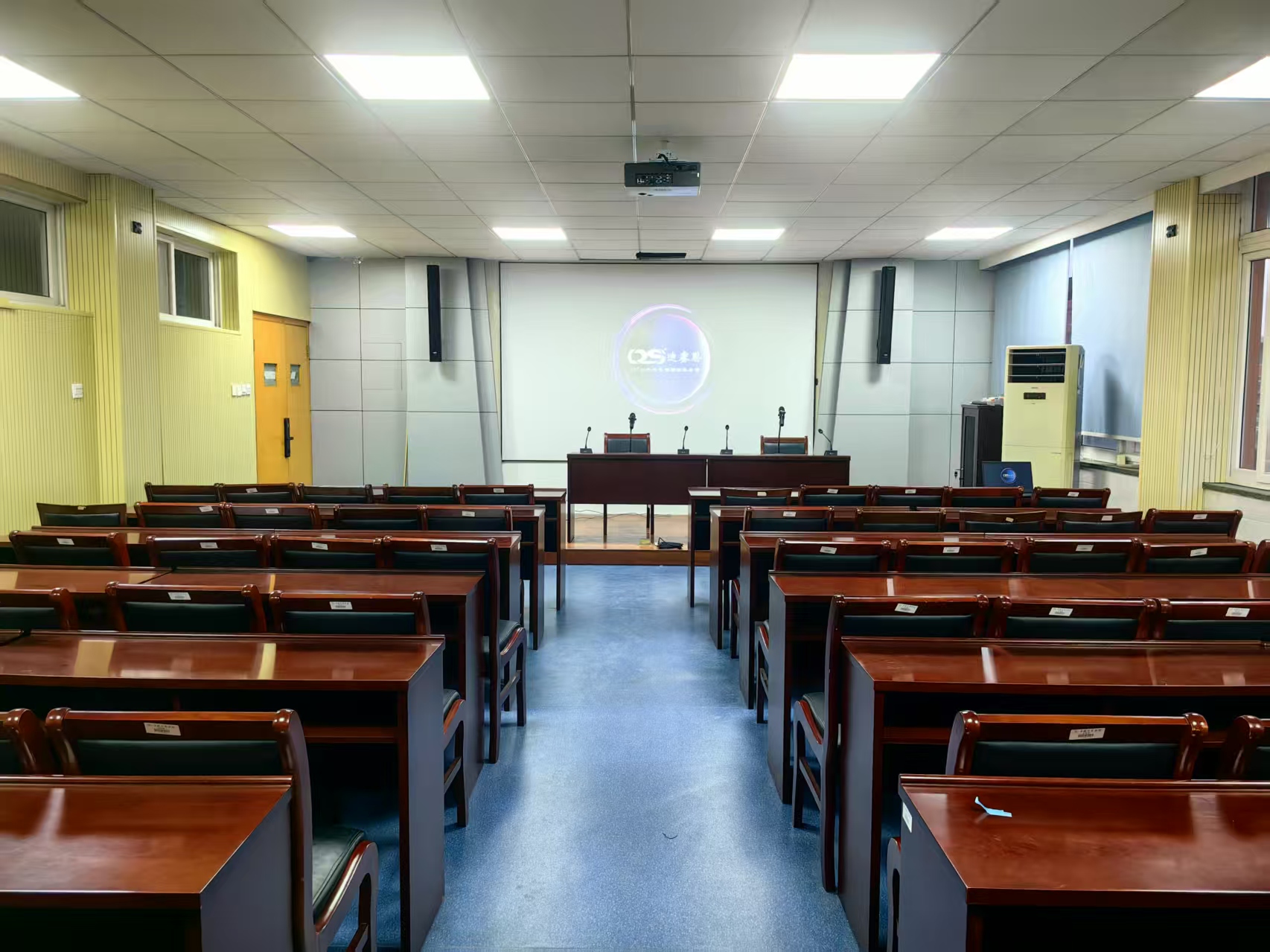 會(huì)議室采用DS無(wú)線數(shù)字會(huì)議系統(tǒng):系統(tǒng)采用無(wú)線方式連接,便攜安裝,而且無(wú)需布線,不影響整體的裝修布局??蛇B接會(huì)場(chǎng)音響擴(kuò)聲及錄音設(shè)備,可與DS中控系統(tǒng)結(jié)合,締造完美的會(huì)議系統(tǒng)方案。